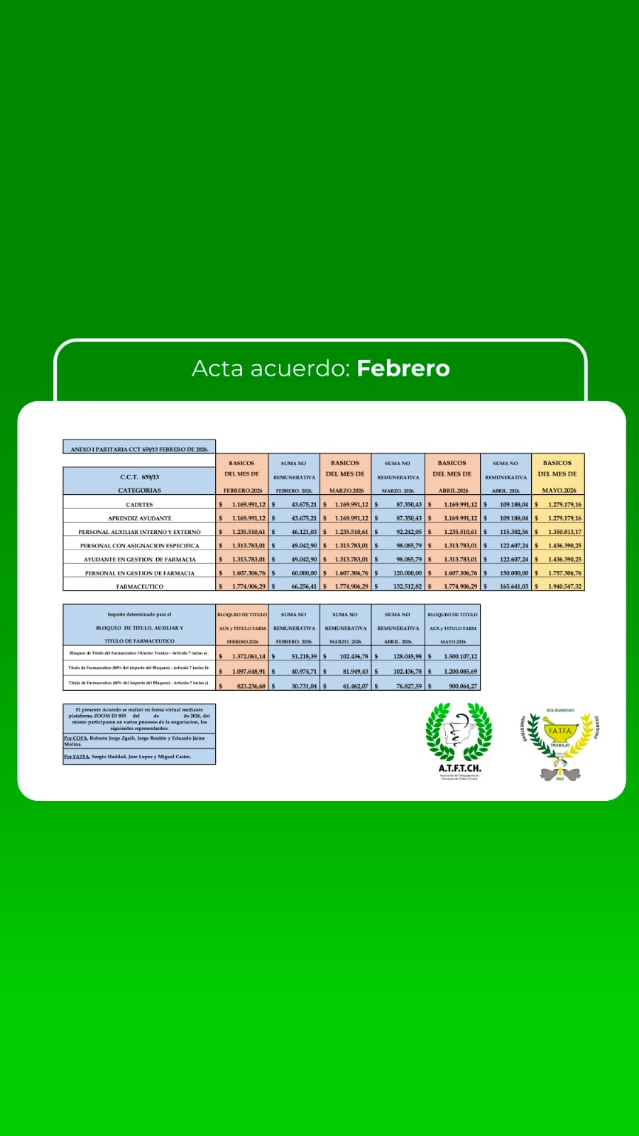 Escala salarial julio-octubre 2022, con sumas acordadas en abril